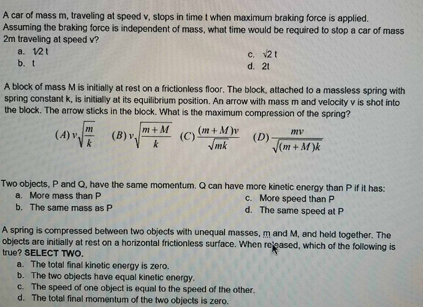 It then collides with a stationary object of mass 2m. A car of mass m traveling at velocity v passes a car of mass m 2 parked at the side of the road. A car traveling with velocity v is decelerated by a constant acceleration of magnitude a.